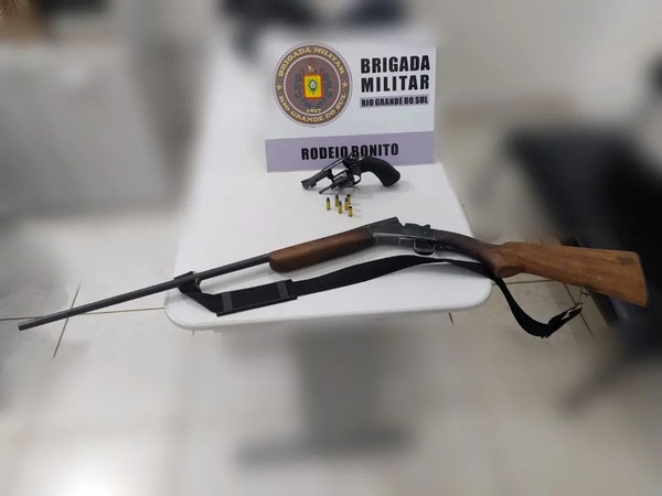 Ao chegar no local, o homem foi preso, sendo localizado e apreendido um revólver calibre 32, que encontrava-se na situação de furtado, municiado com quatro munições intactas e duas deflgradas, além de uma espingarda calibre 36.