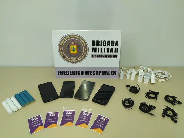O jovem foi abordado e preso pela guarnição de serviço, com ele foram localizados seis tabletes de Durepoxi, que é um adesivo termofixo que endurece quando misturado a resina epóxi, cinco chips telefônicos, quatro celulares Smartphones, cinco carregadores de celulares, além de seis fones de ouvido.