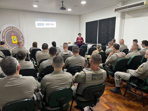 Na tarde desta quarta-feira, 17 de setembro, o 37º Batalhão de Polícia Militar recebeu a psicóloga Cláudia Beux dos Santos Roduyt da Rosa para uma palestra para o efetivo, dedicada à valorização da saúde mental no ambiente de trabalho .