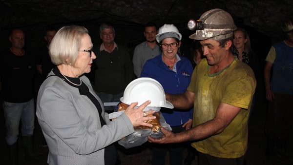 A secretária Arita foi à mina de extração em Linha Alta conversar com garimpeiros e entregar o material. "Viemos aqui para celebrar o compromisso do Governo do Estado de cuidar da saúde do trabalhador", afirmou a secretária.
