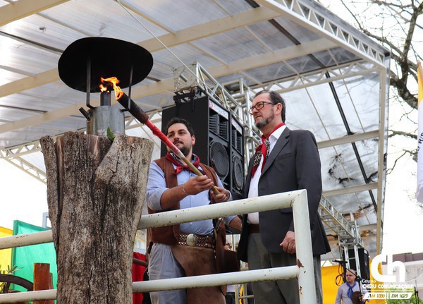 A programação de abertura começou em Taquaruçu do Sul, com o acendimento da Chama Crioula no túmulo do dentista Paulo Inácio Zanchet, tradicionalista homenageado nesta edição da Semana Farroupilha de Palmitinho. Após, cavalarianos conduziram o fogo simbólico até a Praça Tiradentes, onde aconteceu a solenidade de abertura oficial do 32º Acampamento Farrapo, com a presença de autoridades como o prefeito Luiz Carlos Panosso e o coordenador da 28ª Região Tradicionalista (28ª RT), Rodrigo Bordignon.