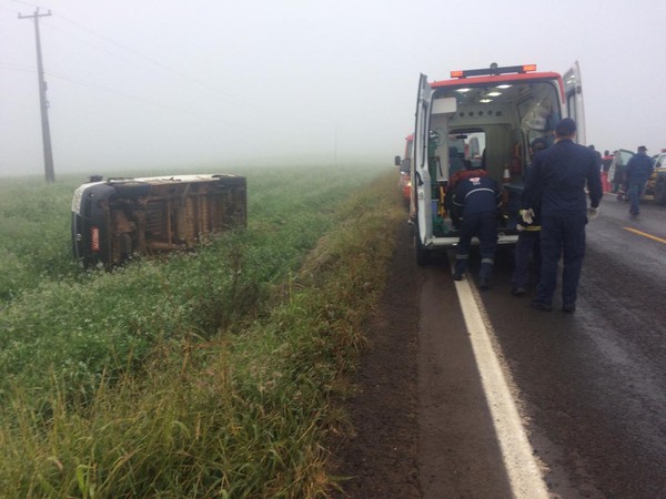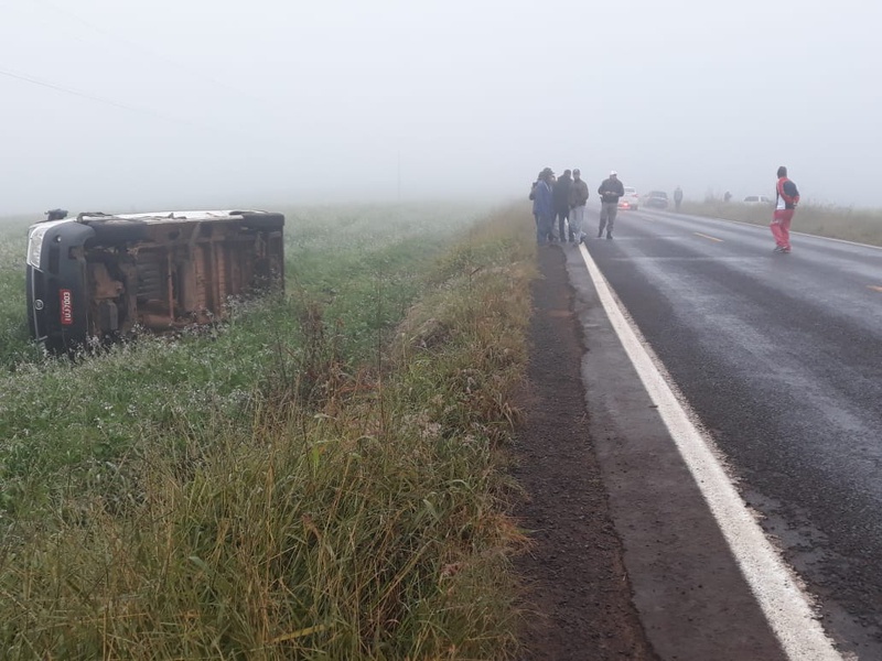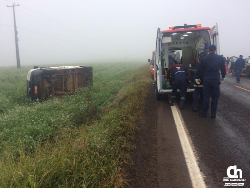 Os veículos acabaram ficando fora da pista, sendo que a Sprinter tombou devido ao terreno. Seis pessoas estavam no veículo locado pelo município de São José das Missões para transporte de pacientes.