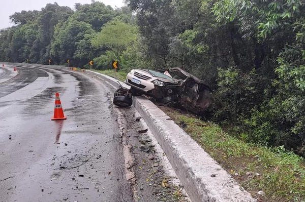 Um acidente entre um carro e uma carreta bitrem deixou três pessoas feridas no km 154 da BR-386, em Almirante Tamandaré do Sul, na manhã desta quinta-feira (21). A colisão aconteceu por volta das 7h40min e fez com que o carro modelo Corolla saísse da pista.