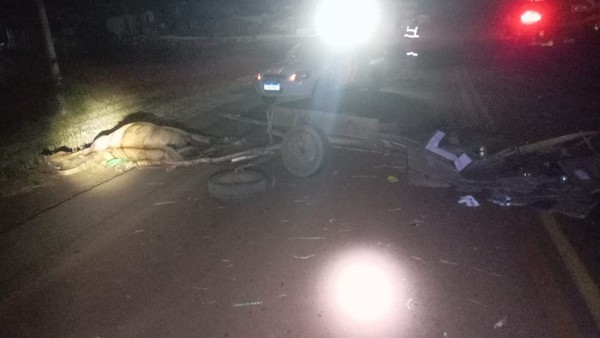 O animal que puxava a carroça morreu no local em decorrência do impacto