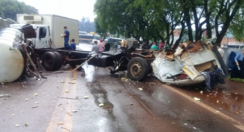 Acidente envolvendo três caminhões na BR 386 em Sarandi