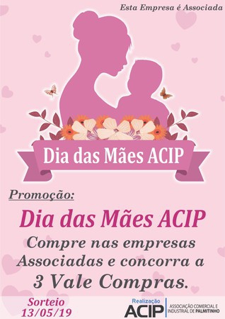 A ACIP - Associação Comercial e Industrial de Palmitinho está lançando a partir desta segunda-feira, dia 22, a campanha especial "Feliz dia das mães com a ACIP".