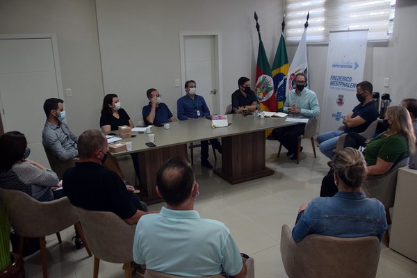 Em reunião realizada na manhã desta quarta-feira, 17 de fevereiro, o prefeito de Frederico Westphalen, José Alberto Panosso, acompanhado do vice-prefeito, João Vendruscolo, e dos secretários municipais, anunciou novas medidas de combate ao coronavírus no município. A reunião foi motivada pelas notícias do colapso no sistema de saúde em Chapecó e outros municípios da região Oeste de Santa Catarina.