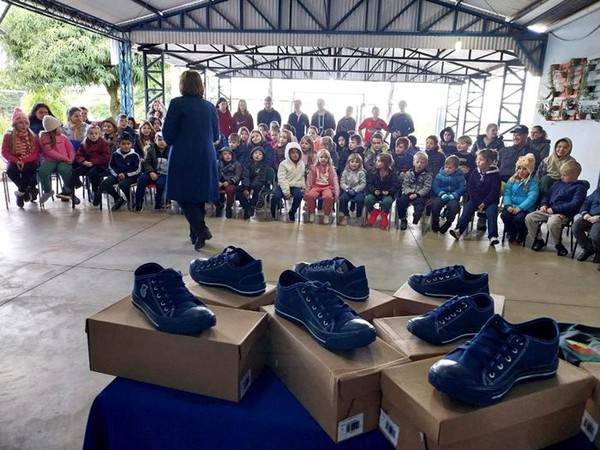 Os tênis foram entregues aos alunos da Pré-Escola ao 9º ano. Cada escola elaborou uma lista de necessidades, que foi encaminhada à Secretaria Municipal de Educação para a aquisição dos itens.