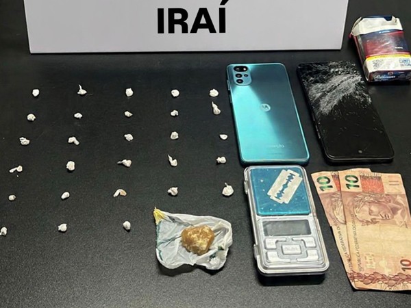 Com o menino, os policiais militares localizaram 28 pedras de crack já fracionadas e prontas para a comercialização, além de uma porção maior da mesma substância ainda não dividida. Também foi apreendida uma balança de precisão, R$ 20,00 em espécie e dois aparelhos celulares, sendo que um deles foi danificado pelo próprio adolescente no momento da abordagem.