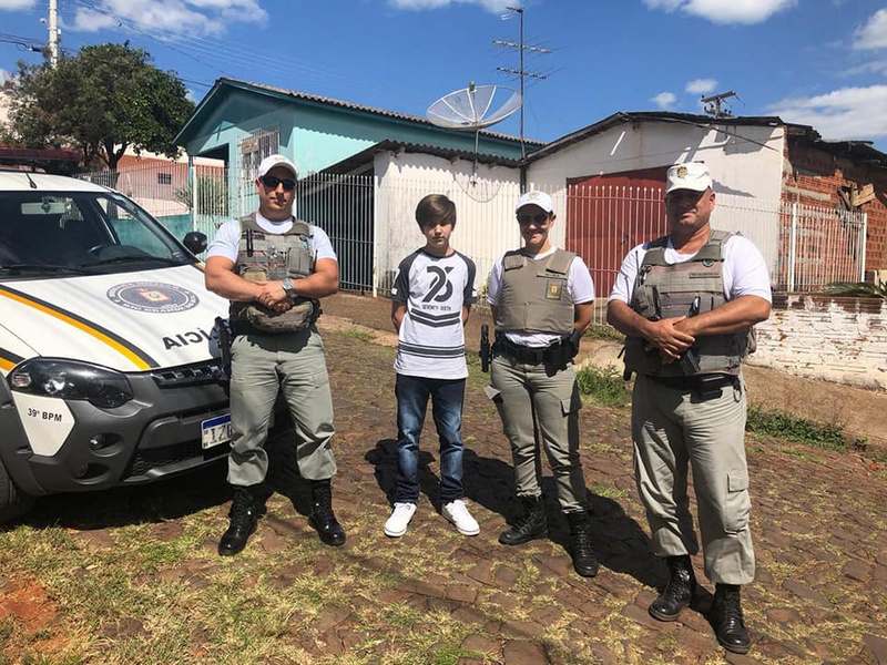Surpreso, o menino que já havia exposto através das redes sociais que sonha em ser um PM foi convidado pelo Sargento Vilaverde, Soldado Leila e Soldado Dias a conhecer as dependências do quartel da Brigada Militar de Palmeira das Missões bem como um pouco do trabalho desenvolvido pela Polícia em nossa comunidade.