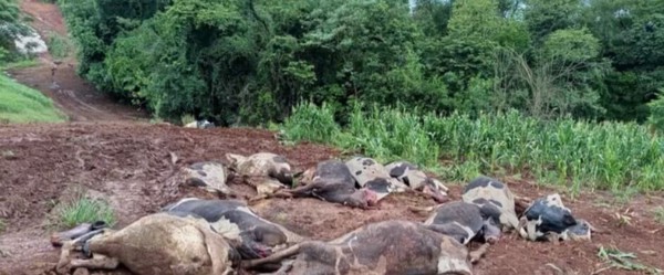 Uma família de Novo Xingu perdeu, em poucas horas, 48 vacas em fase de lactação, praticamente toda a produção leiteira da propriedade. O fato aconteceu na sexta-feira, 2 de janeiro, no interior do município e o prejuízo, apenas com os animais, ultrapassa os R$ 600 mil, sem contar a perda mensal da renda proveniente do leite.