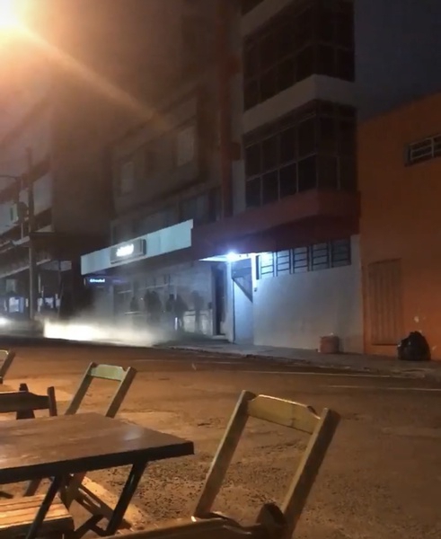 Uma nuvem de fumaça saindo da agência do banco Banrisul assustou quem passava pela rua José Cañellas e rua do Comércio, no centro de Frederico Westphalen, na noite deste sábado, 28 de dezembro.