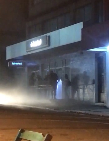 Não era assalto ou arrombamento, era o alarme com cortina de fumaça que dispararam provavelmente porque algum usuário pode ter tentado entrar na agência após o encerramento do atendimento eletrônico.