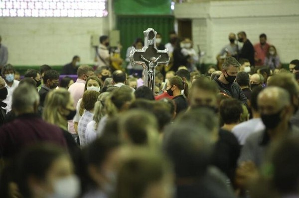 A missa aconteceu por volta das 9 horas, com os corpos das cinco vítimas – três bebês e duas profissionais. Com a cidade coberta por faixas pretas nas portas e muita comoção, a comunidade se despediu das vítimas. O enterro aconteceu ainda na manhã desta quarta-feira.
