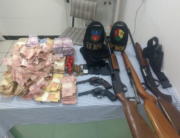 Com a quadrilha, foram apreendidos fuzis, espingardas e munições, além de uma mochila com dinheiro. A quantia ainda não foi informada.