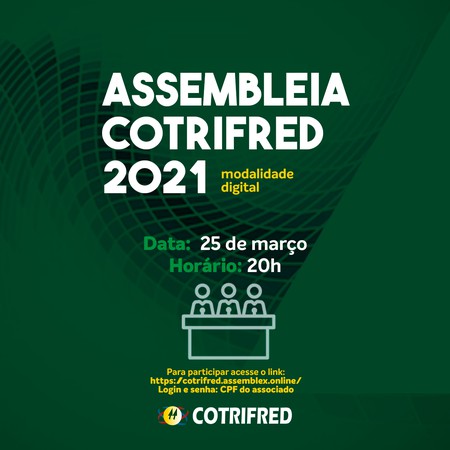 A Cooperativa Tritícola Frederico Westphalen, a Cotrifred, realiza nesta quinta-feira, 25, a Assembleia Geral Ordinária 2021. A reunião acontecerá de forma remota, a partir das 20 horas e terá a participação virtual de associados, membros da diretoria e do conselho da Cooperativa. A assembleia será transmitida através de uma plataforma digital. O link de acesso já está disponivel nas redes sociais da cooperativa.