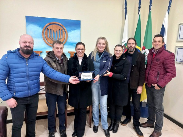 Na manhã desta sexta-feira, 20, a Associação Empresarial ACI/CDL de Frederico Westphalen, através da sua presidente Patrícia Cerutti e os diretores Carlos Trelles e Igor Senger, fez a entrega de uma placa de homenagem nesta manhã à coordenação da Universidade simbolizando os votos de estima de toda a entidade e seus associados.