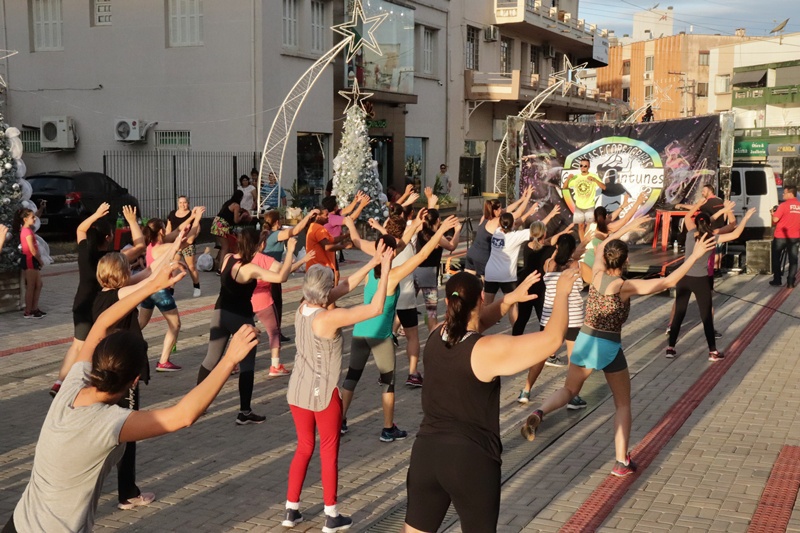 Um aulão solidário foi realizado na Rua do Arcos em Frederico Westphalen, o evento foi promovido pelo estúdio Geovani Danças e Coreografias, quinta-feira, 19 de novembro houve sorteio de brindes, entre eles um tratamento do Magrass. O evento beneficente recolheu alimentos e brinquedos que serão doados ao Promenor, Lar dos Idosos e através da Cufa no bairro São José.