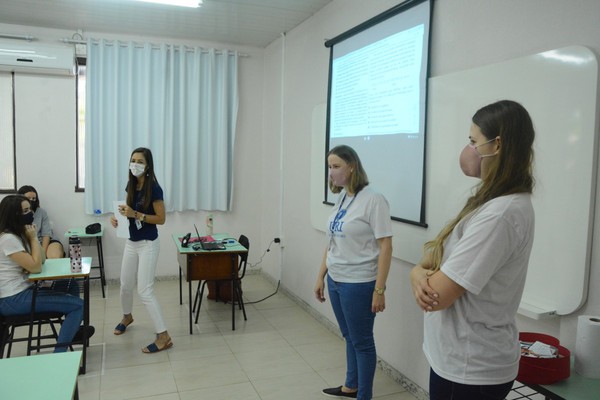 Ainda na manhã, houve o evento de boas-vindas aos estudantes, no Salão de Atos da URI/FW. Respeitando o distanciamento, os estudantes foram apresentados aos professores e direção, além de serem informados sobre o funcionamento da escola e os protocolos sanitários a serem cumpridos.