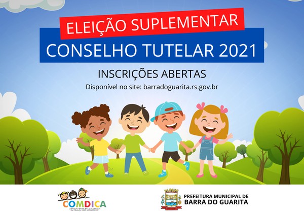 Estão abertas as inscrições para o processo de escolha suplementar de membros do Conselho Tutelar de Barra do Guarita. Para participar o candidato deve realizar a inscrição até o dia 12 de novembro, no Centro de Referência de Assistência Social – CRAS.