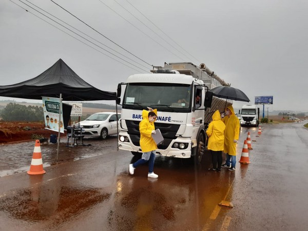 Equipes de saúde abordam os veículos e realizam um questionário sobre sintomas do Coronavírus