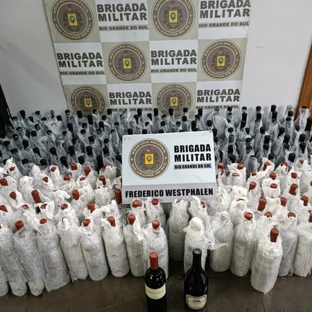 De acordo com a polícia, a guarnição de serviço do 37º BPM abordou um ônibus de linha, onde foram localizadas e apreendidas 8 caixas de papelão contendo 240 garrafas de vinho de origem estrangeira, sem procedência, provenientes de descaminho.