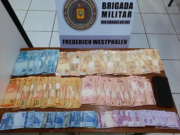 Na manhã de hoje, 29 de março, policiais militares do 37º Batalhão de Polícia Militar apreenderam a quantia de R$ 8.920,00 em espécie e um celular Motorola na cidade de Frederico Westphalen.