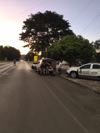 Durante uma barreira de fiscalização, os policiais abordaram um veículo Spin que transportava diversos itens de origem irregular. No interior do carro foram encontrados: