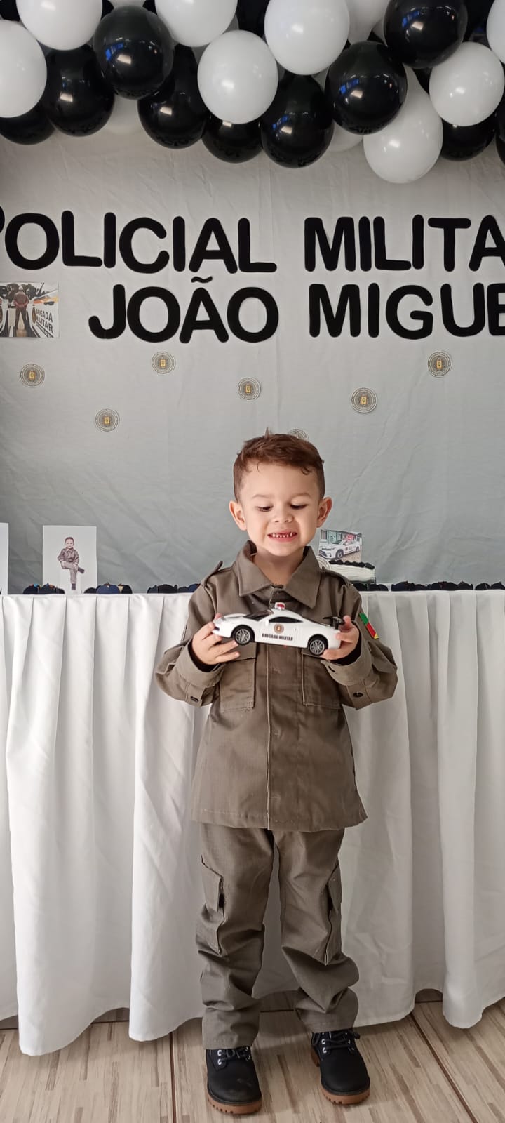 De acordo com o comando do 37º Batalhão de Polícia Militar a mãe Luana entrou em contato com a Brigada para conseguir a fardinha emprestada e contou que o filho sempre disse que queria ser policial e que tinha escolhido esse como tema da sua festa de 4 anos.