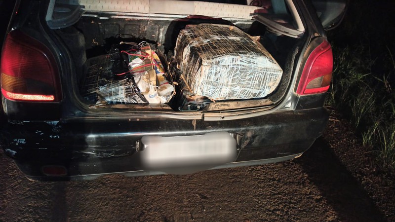 No interior de um veículo, emplacado na cidade de Marau, foram encontrados quatro volumes, Um total de 141,1 quilos de maconha.