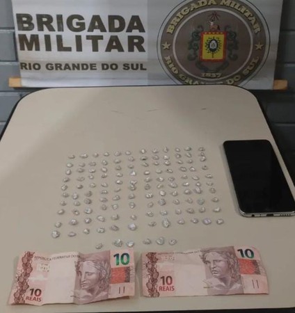 Durante a ação, foram localizadas e apreendidas 126 pedras de crack, totalizando 12,2 gramas, uma quantia em dinheiro e um smartphone.