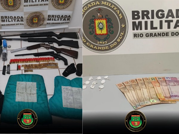 Na segunda ocorrência, os policiais prederam uma mulher por porte ilegal de armas de fogo e munições. Foram localizadas e apreendidas, durante a ação, quatro espingardas, duas placas balísticas, diversas munições, dois carregadores de pistola, três coldres, uma máscara e dois smartphones.