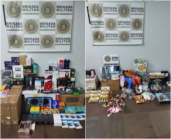 Na primeira ocorrência, registrada ainda na noite de sábado, os policiais apreenderam equipamentos eletrônicos e de informática, entre eles monitores, modens, roteadores, memórias, placas, caixas de som, TV Box, além de celulares, fones de ouvido, películas, lâmpadas, perfumes importados e outros itens de valor comercial.