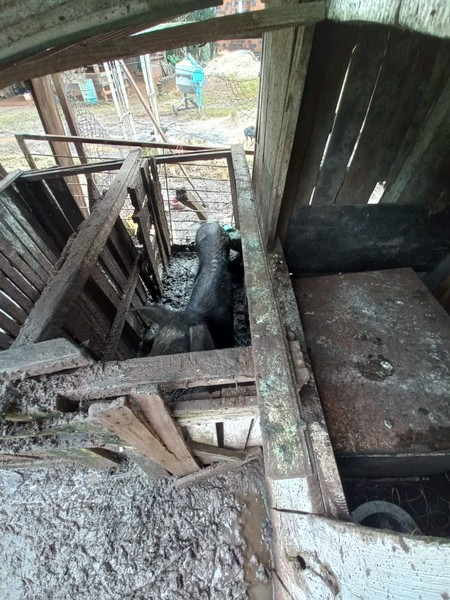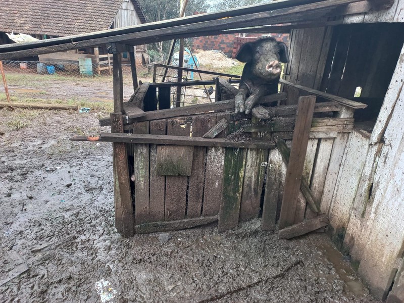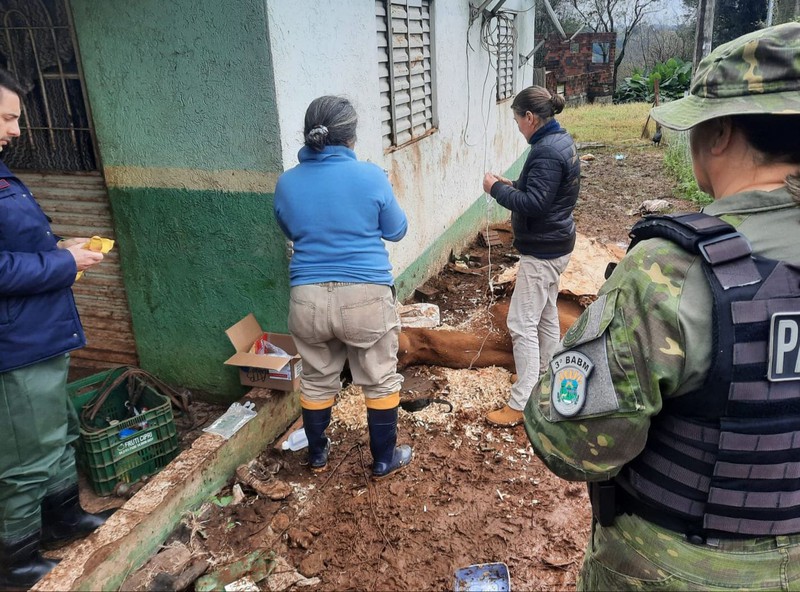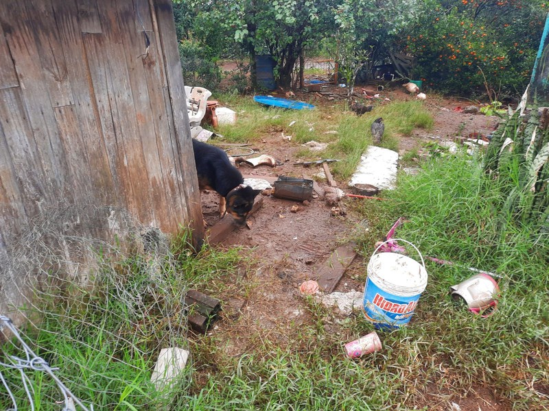 Ao chegar no local, as equipes avistaram uma égua, caída, em estado de extrema desnutrição. Também, uma cachorrinha, sem raça definida, apresentava sarna em todo o corpo . Três cães, da raça Pastor-alemão, estavam presos em abrigos improvisados, não havia alimentação adequada aos cachorros. Ainda, os policiais militares encontraram dois porcos confinados em um local com grande acúmulo de dejetos, os suínos estavam magros e sem acesso à água e comida .