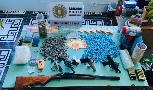 A Brigada Militar de Pinheirinho do Vale juntamente com a Força Tática do 37ª Batalhão de Polícia Militar prendeu dois homens e apreendeu uma grande quantidade de drogas, armas, munições e dinheiro.