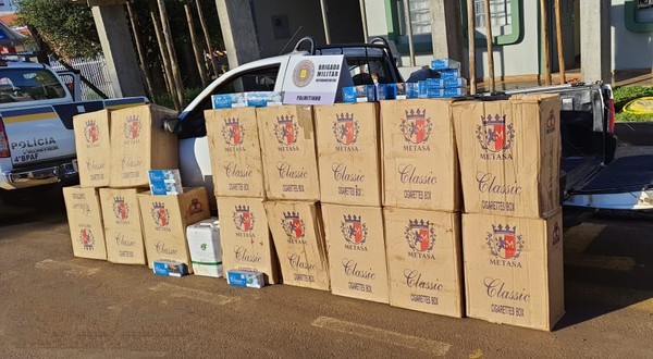 A prisão foi realizada após acompanhamento e abordagem veicular e localização de 750 pacotes de cigarros de origem estrangeira, além de um galão de agrotóxico, totalizando um prejuízo estimado em R$ 56 mil ao crime.