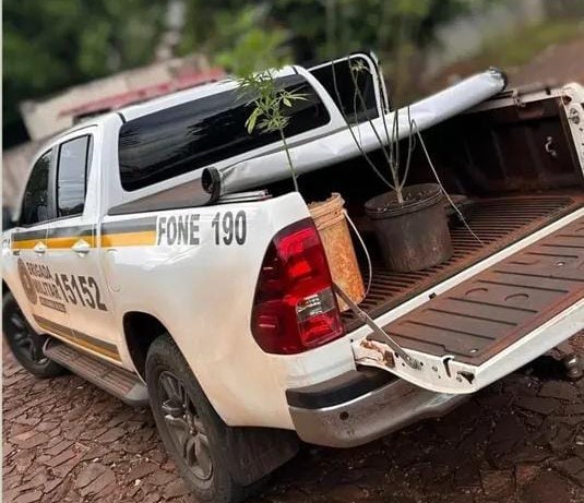 Ainda na tarde da quinta-feira, os policiais do 7ºBPM apreenderam duas plantas de maconha, no município de Redentora.
