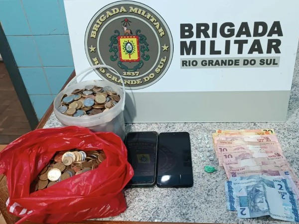 Durante patrulhamento, a guarnição de serviço abordou um indivíduo suspeito de estar vendendo entorpecentes. Na busca pessoal foram localizadas 14 pedras de Crack, uma bucha de cocaína, dois telefones celulares, além de uma quantia em dinheiro.