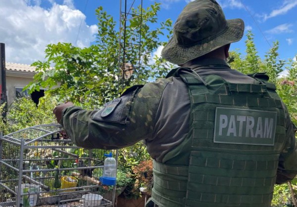 Na primeira residência, ao perceber a chegada dos policiais militares, o morador correu para abrir as gaiolas e soltar os pássaros que estavam presos. Três aves foram soltas, e um pássaro, da espécie popularmente conhecida como Trinca-ferro, foi resgatado pela guarnição. No local, foram apreendidas sete gaiolas e uma armadilha, conhecida por alçapão - material de captura de aves diretamente da natureza.