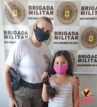 Izadora ficou sabendo da campanha Cabelos de aço, promovida pela Brigada Militar, que lançou no mês de fevereiro a Gincana Missão Possível - Proerd 2021. A pequena Iza cortou e entregou seus cabelos para a soldado Fernanda, instrutora do PROERD do 37º Batalhão de Polícia Militar.