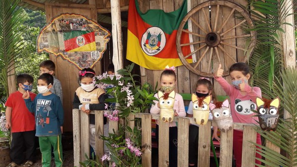Durante o mês, as instituições de ensino também receberam a visita do Prendado de Prendas e Peões da Gestão de 2019/2021 do CTG Sentinela da Coxilha, além dos Peões e Prendas do mesmo CTG que representam o município na 28º Região Tradicionalista. Nesses encontros foram realizadas palestra sobre a origem da Semana Farroupilha, a Patrona dos Festejos Farroupilhas 2021, os Símbolos Cívicos e Ecológicos do Rio Grande do Sul, brinquedos e a Indumentária Gaúcha.
