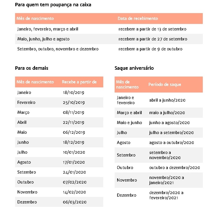 Para quem tem conta poupança na Caixa, o cronograma começa em 13 de setembro. Para quem não tem conta poupança na Caixa, o calendário muda.