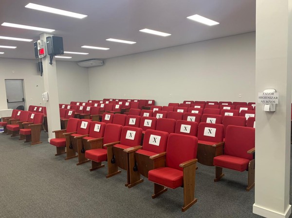 Devido as alterações no sistema de monitoramento da pandemia da Covid-19, a sessão poderá contar com a presença de público, porém considerando as restrições será permitida a entrada de somente pessoas sentadas com distanciamento mínimo entre as cadeiras sendo respeitado, em torno de 35 lugares serão disponibilizados.