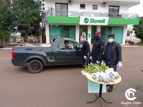 A distribuição ocorreu em frente à Agência do Sicredi. O drive tru foi realizado em alusão ao Dia do Meio Ambiente, que foi comemorado em 5 de junho.