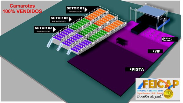 Iniciou na segunda-feira, 3 de setembro, a comercialização dos camarotes, passaportes e ingressos nos espaços Front Bistrô, Vip e Pista para os shows da Feicap 2019 – Edição Ouro. Em duas horas todos os espaços de camarotes esgotaram.