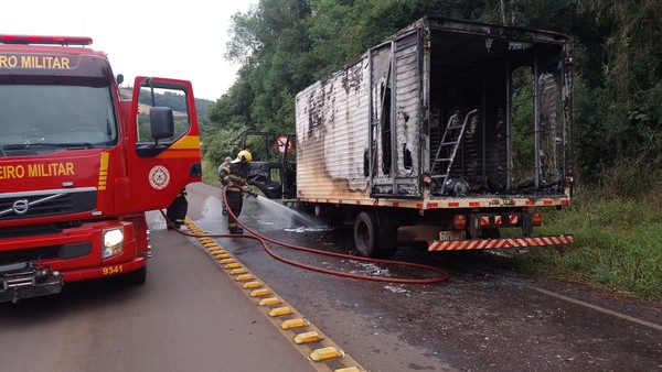 O veículo placas de Frederico Westphalen, estava fazendo entrega de produtos de limpeza e em determinado trecho da rodovia começou o fogo, de acordo com o motorista por causas desconhecidas.