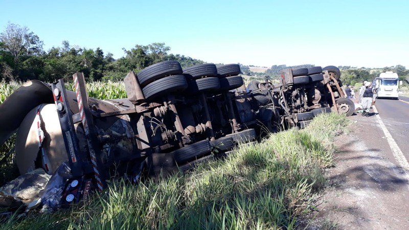 O caminhão estava carregado com gordura animal e transitava no sentido Palmitinho – Vista Alegre.