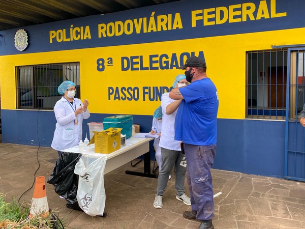 A Polícia Rodoviária Federal (PRF), o Ministério da Saúde, a Secretaria Municipal da Saúde de Passo Fundo e o SEST/SENAT realizaram uma ação conjunta na Unidade Operacional da PRF, entre às 9h e 14h desta quinta-feira, 30, com objetivo de vacinar os profissionais do transporte de cargas.