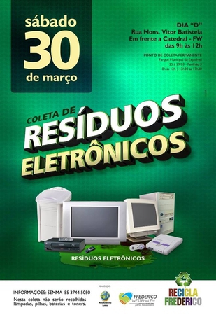 Inicia nesta segunda-feira, 25, mais uma edição da campanha de recolhimento de lixo eletrônico em Frederico Westphalen, realizada pela Administração Municipal em parceria com a empresa Natusomos e o Recicla Frederico.