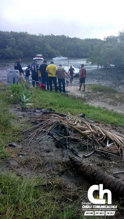 O Grupamento Tático Aéreo (GTA) sobrevoa o local do acidente, onde trabalham ainda equipes da PM e do Corpo de Bombeiros. Elas chegaram numa embarcação dos bombeiros, já que a área é de difícil acesso, de mangue e mata fechada.
